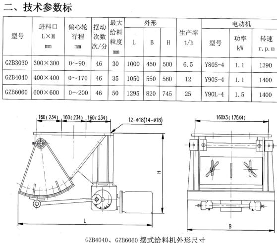 GZB型擺式給料機(jī)(槽式給料機(jī)或者往復(fù)式給料機(jī))由殼體、弧板、鄂板、驅(qū)動(dòng)裝置、閘板等組成,當(dāng)電機(jī)開動(dòng)后經(jīng)減速機(jī)、曲柄連桿機(jī)構(gòu)拖運(yùn)弧板作圓弧往復(fù)運(yùn)動(dòng), 煤均勻地卸到其它設(shè)備上。