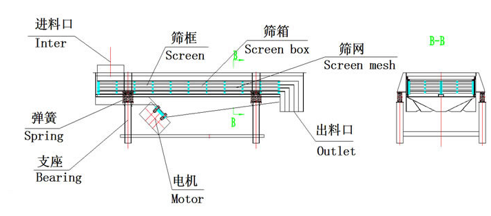 7、篩機(jī)使用塊偏心振動器激振,軸承承載能力大,使用壽命長;