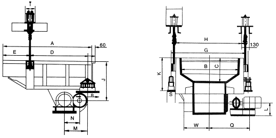 座式安裝時,安裝給料機(jī)底架的地面應(yīng)平整。底架安放平整后,將支承彈簧放在彈簧支座上,使彈簧的內(nèi)孔對準(zhǔn)彈簧支座上的凸臺、再將給料槽安放在彈簧上,給料槽應(yīng)橫向水平,每端左右兩側(cè)的支座高度應(yīng)相同,誤差不得超過3mm。所有彈簧必須處于垂直狀態(tài)。如有扭斜,應(yīng)調(diào)整彈簧下面支座的位置??梢杂眉訅|片的方法調(diào)整給料槽的傾角和橫向水平度。